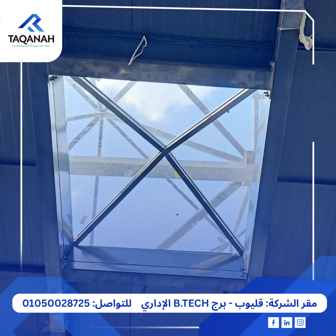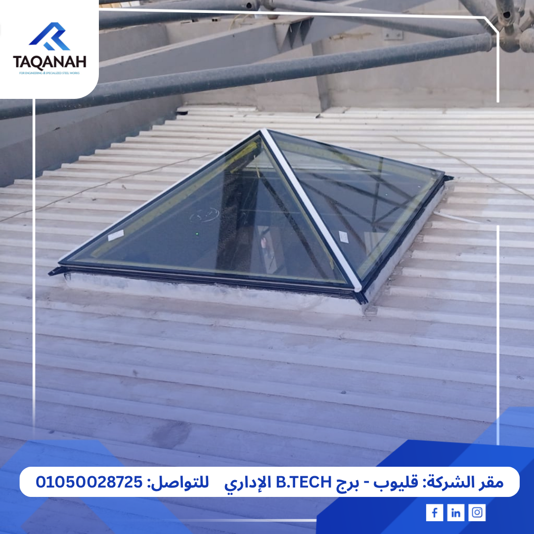 كما تم تصميم وتنفيذ سكاي لايت زجاجي على شكل هرمي يسمح بدخول الضوء الطبيعي إلى المساحة المغطاة، مع إضفاء لمسة جمالية تُناسب طابع المشروع التجاري.